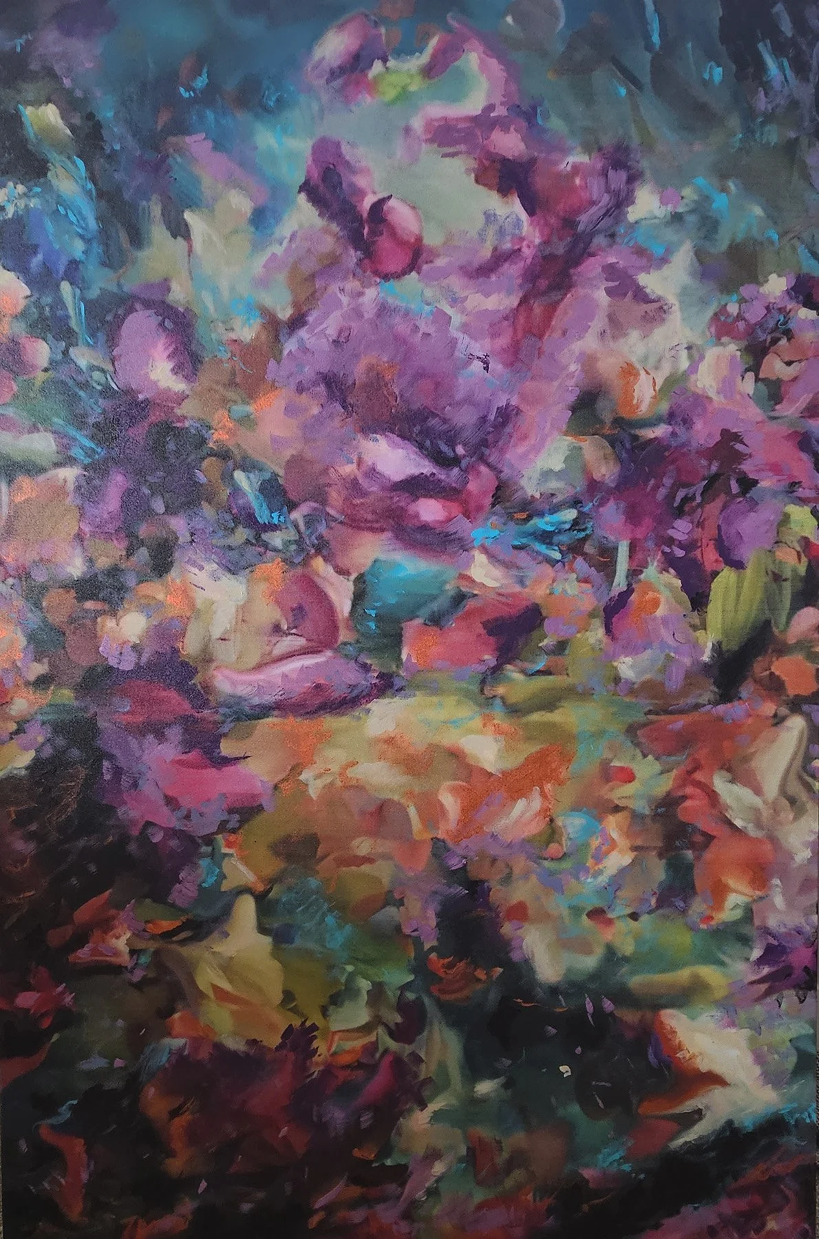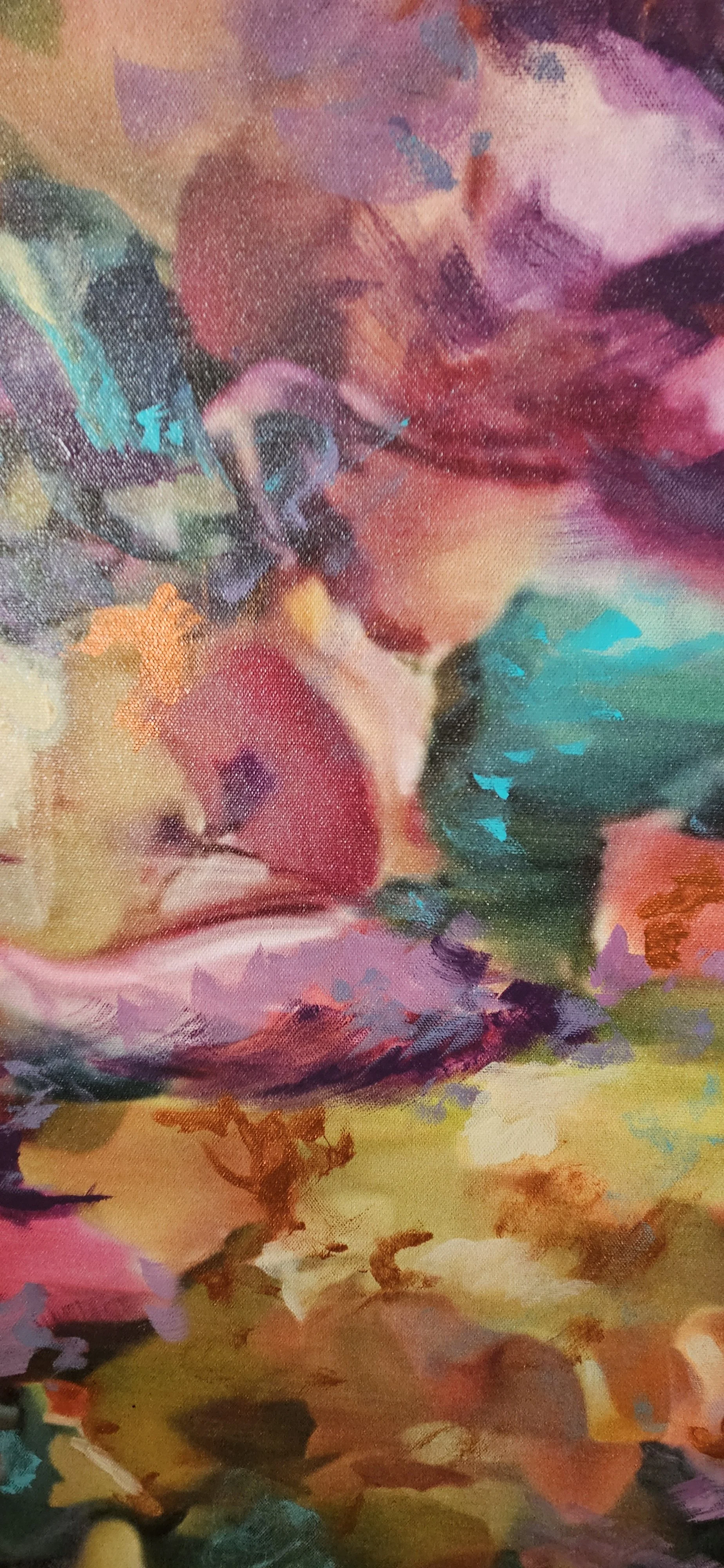 This piece traces what can’t be pinned down—emotions, memories, undercurrents of thought. It’s a landscape without geography, where colors and forms flow like rivers of feeling.
